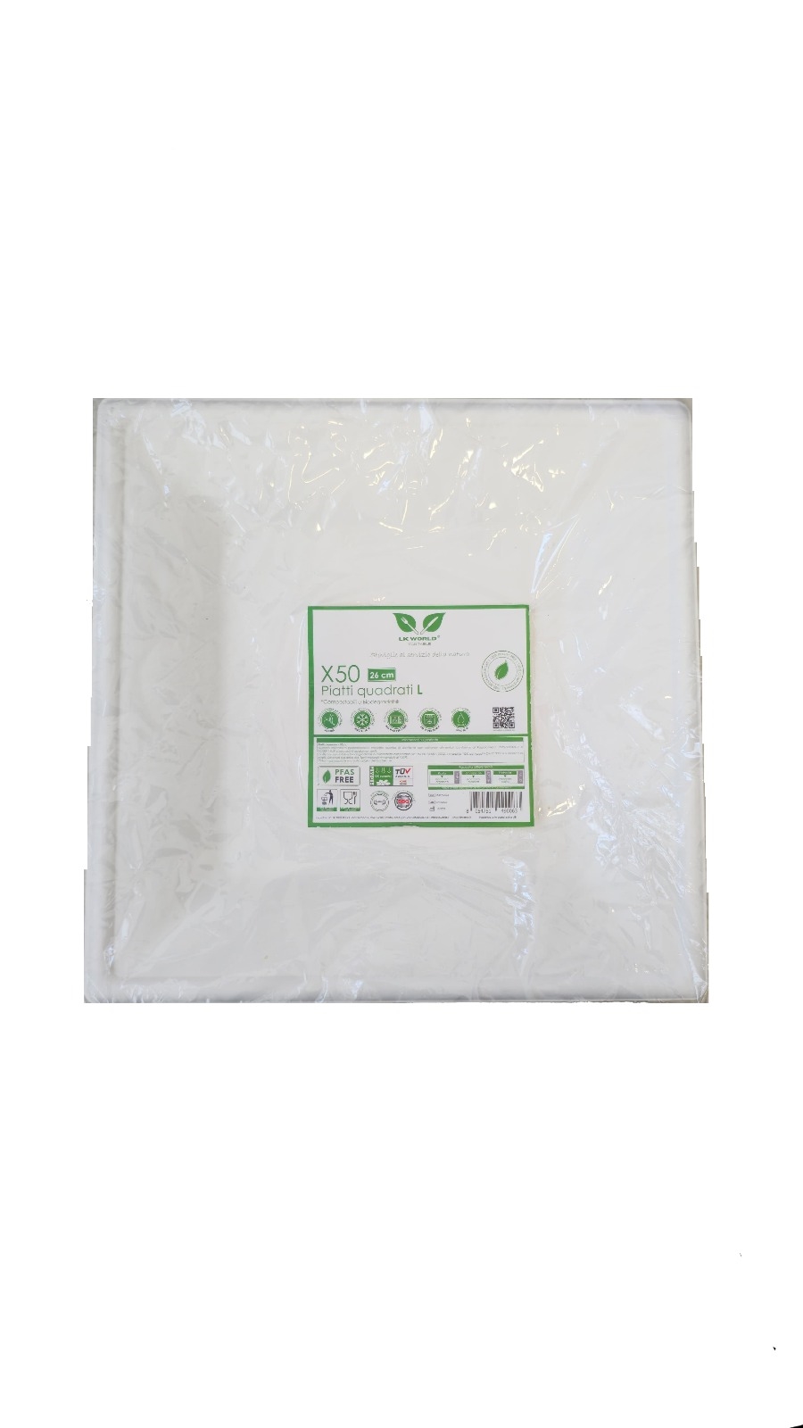 AMABIO PIATTI QUADRATI 50PZ 26X26CM 28GR POLPA DI CELLULOSA BIANCHI