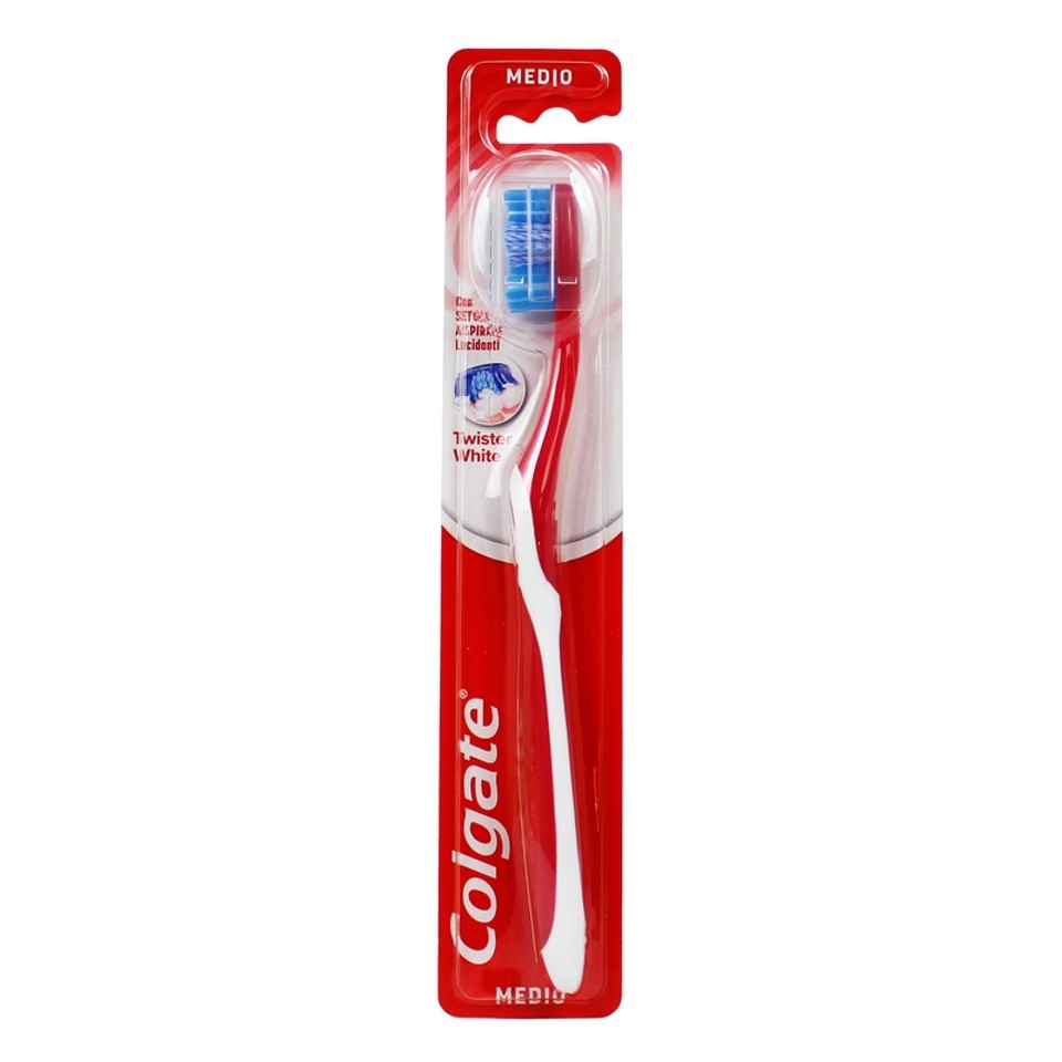 Lo spazzolino Colgate Twister White è caratterizzato da esclusive setole a spirale lucidanti e disposte ad elica, che garantiscono una pulizia profonda nello spazio tra i denti e la linea gengivale. Le setole ad altezze differenti si adattano alla forma dei denti per pulirne meglio la superficie. Lo Spazzolino ha inoltre un pulisci-lingua a spirale.