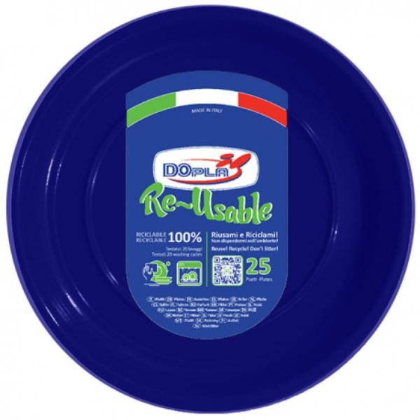 DOPLA PIATTI PIANI RIUTILIZZABILI 25PZ BLU
