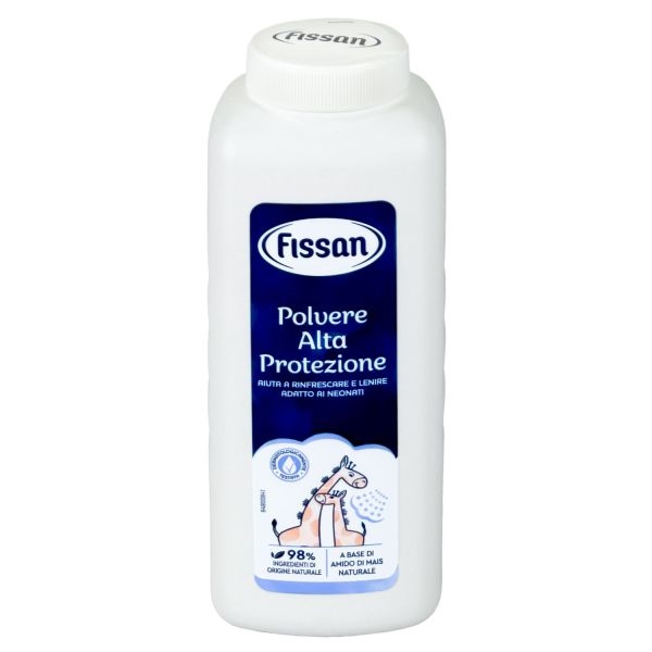 La polvere Alta Protezione di Fissan si prende cura della pelle di neonati e bambini, grazie alla sua preziosa formula arricchita con talco puro, che rinfresca e favorisce una normale traspirazione cutanea. In caso di eccessiva sudorazione o irritazioni da sfregamento da pannolino, la polvere calma, rinfresca e protegge la pelle. Dermatologicamente testata e ad alta tollerabilità, è facile da stendere e da massaggiare.