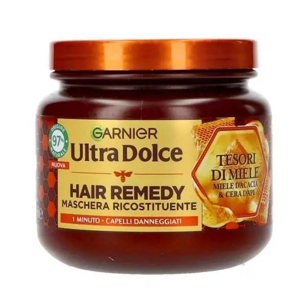 Per la sua ricetta ricostituente, appositamente preparata per il trattamento dei capelli fragili, che si spezzano, Garnier Ultra DOLCE raccoglie 3 tesori dall`alveare: la pappa reale riparatrice, elisir rivitalizzante conosciuto per rinforzare i capelli dalla radice; la propoli ricostituente, vero collante naturale prodotto dalle api, conosciuto per le sue proprietà lenitive, e il miele nutritivo, nettare millenario da sempre conosciuto per la sua dolcezza e proprietà nutritive.Intensamente nutriti, protetti e riparati dalle radici alle punte, i capelli trovano nuova forza.Più forti e brillanti, sono morbidi e facili da pettinare, risplendono di bellezza.