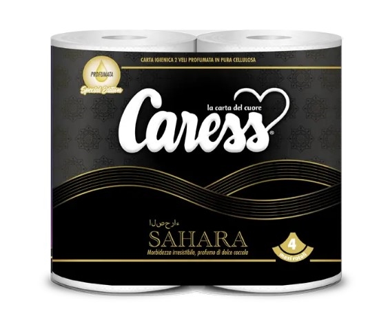 La linea Caress di carta igienica e' perfetta per il tuo bagno. Realizzata in pura cellulosa, questa carta igienica e' morbida e lunga, garantendo un'esperienza di pulizia confortevole e delicata. Grazie alla sua resistenza agli strappi, non dovrai preoccuparti di doverne utilizzare grandi quantita'. Il pacchetto da 4 pezzi con profumo di argan e' ideale per chi cerca un prodotto di alta qualita' e dal profumo delicato. Scegli la linea Caress di Paper Service per un'igiene quotidiana impeccabile e un comfort senza paragoni.NUOVACARESS4