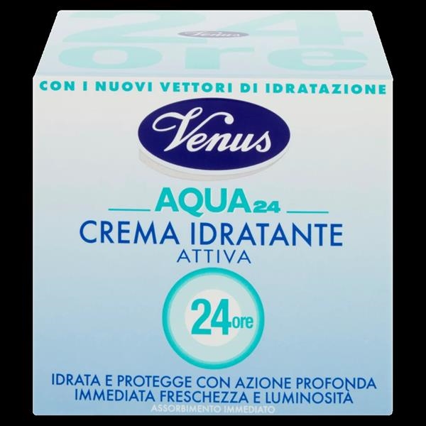 La Crema Venus Aqua 24 attiva 24 ore Formula con p-Aquaporine, scoperta scientifica premiata con il Nobel, potenziata con Acido Ialuronico per assicurare un’idratazione più efficace anche nelle condizioni climatiche più sfavorevoli.Garantisce 3 livelli di idratazione: Immediata disseta la pelle e la rende subito più luminosa.Profonda dinamizza i flussi di idratazione intracellulare. Continua garantisce un’idratazione per 24 ore, modulata secondo i bisogni della pelle.